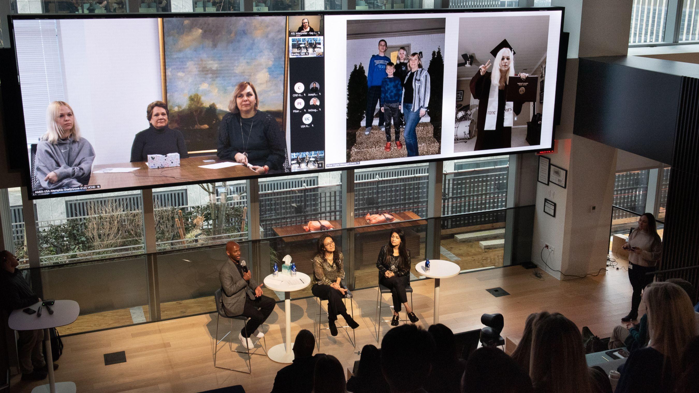 To commemorate this moment in February, Welcome.US and CEO Council partner Pfizer hosted a screening of the documentary film "One Good Reason" at Pfizer’s New York City headquarters. Following the screening, Nazanin Ash, Welcome.US’s CEO, joined Payal Sahni-Becher, Pfizer’s Chief People Experience Officer and Executive Vice President, for a panel discussion moderated by Ramcess Jean-Louis, Pfizer’s Global Chief DEI Officer. It was a day of hope, meaningful connections, and championing solutions to rethink the modern resettlement system—and the role the private sector can play in the process.