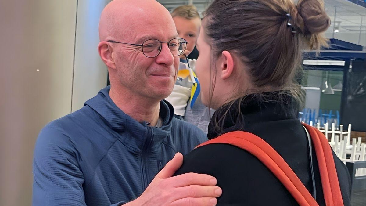 Phil and Yana embrace at the airport as she and Artrem finish their long journey.